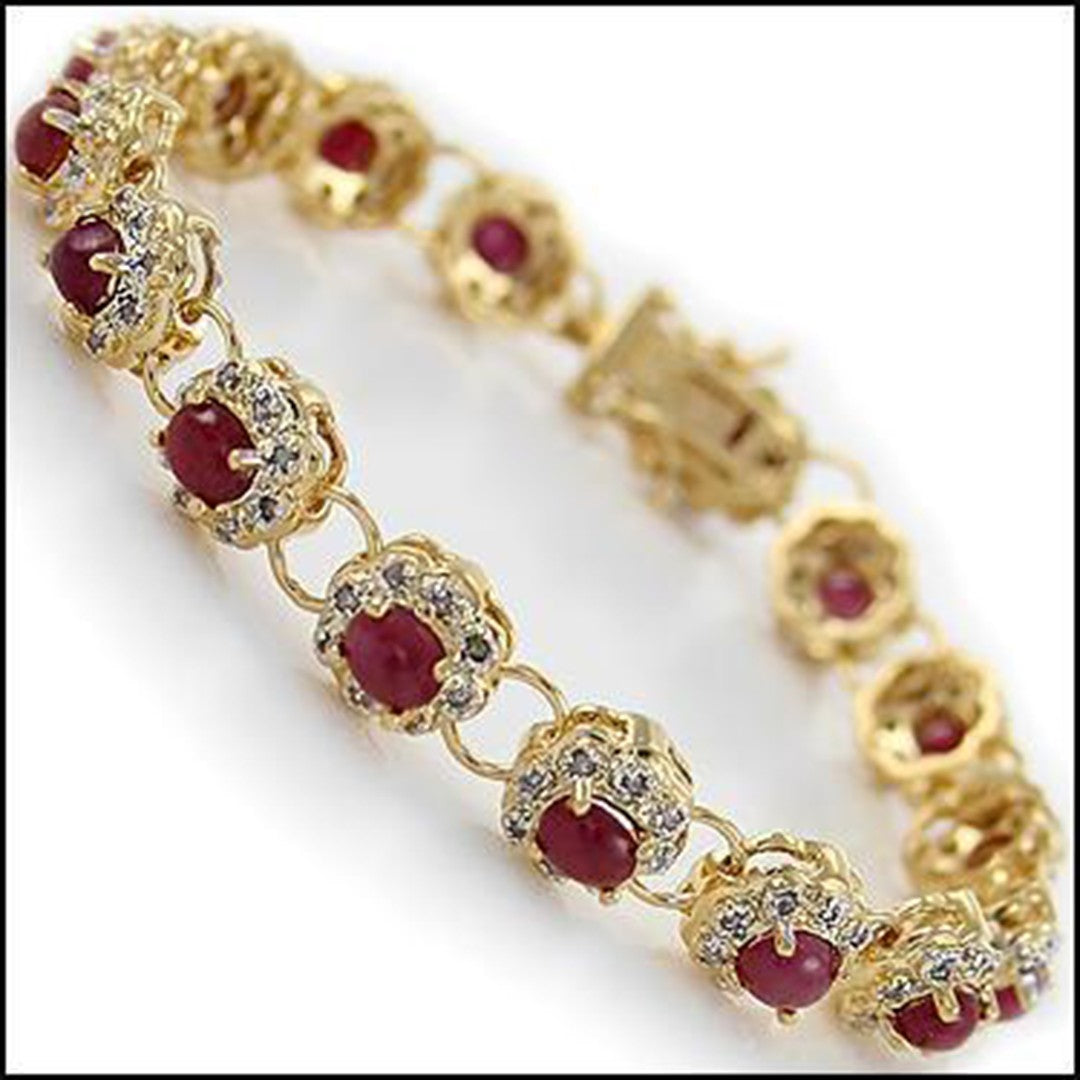Gorgeous Womens 18K Yellow Gold Over Solid Sterling Silver Diamond and Ruby 7.8 Inch Designer Bracelet