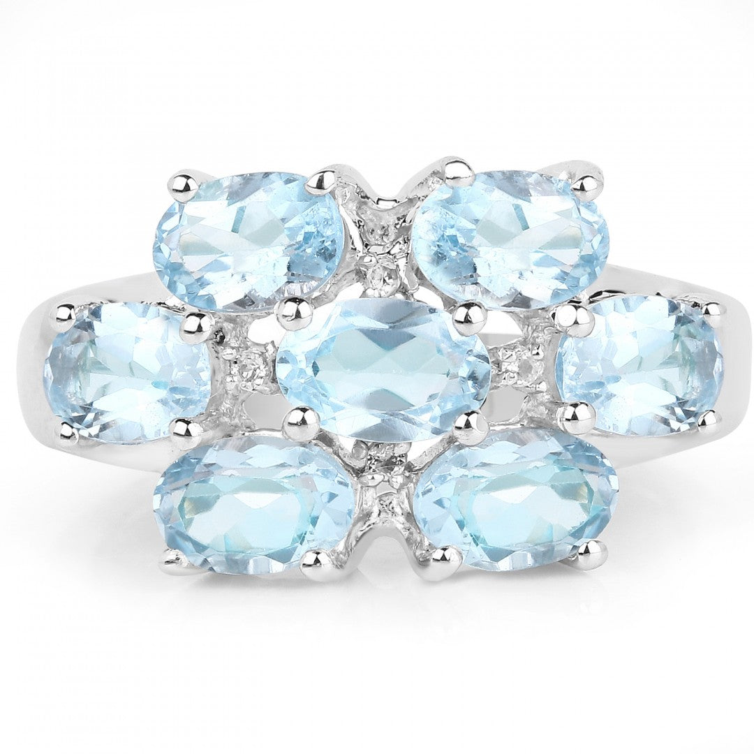 Gorgeous Womens White Gold Rhodium Over Sterling Silver 3.57 CTW Topaz Size 7 Designer Ring