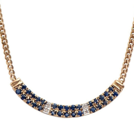 The striking contrast of deep blue sapphires with near-colorless diamonds creates a luxury statement piece that embodies timeless beauty and fearless style. Whether paired with evening attire or worn to elevate everyday looks, this diamond and sapphire necklace ensures all eyes are on you.