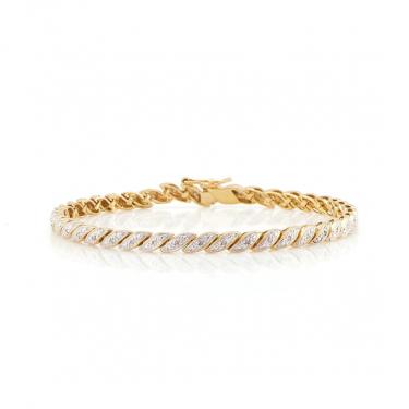 Women’s 18K Yellow Gold Over Sterling Silver Diamond Bracelet – 8"